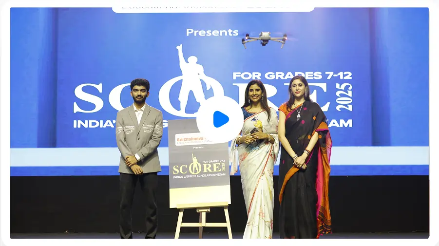 The SCORE Scholarship Exam 2025-26 is a golden opportunity for every student to test their talent, win exciting scholarships, and plan a bright academic future with Sri Chaitanya’s top mentors. Register for the SCORE Exam, prepare with sample papers and syllabus, and take the first step toward free coaching, cash rewards, and global educational experiences.